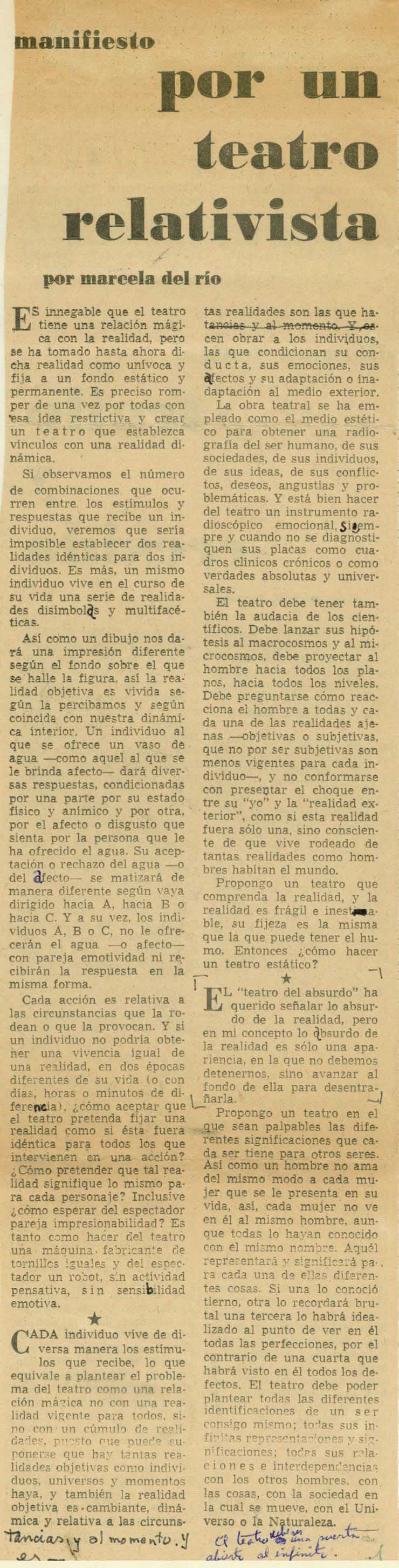 [El teatro debe ser una puerta abierta al infinito (inserción manuscrita de la autora N del E).]