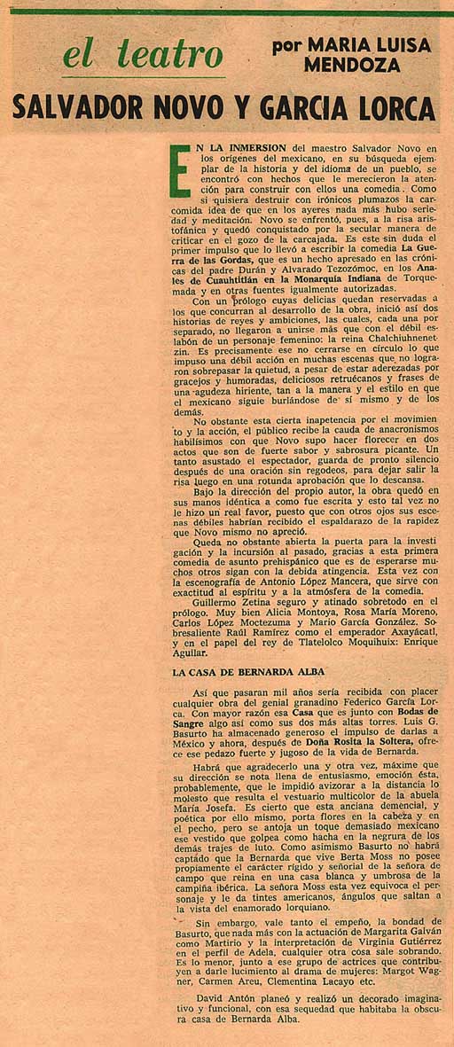 Cómo citar Mendoza, María Luisa. "Salvador Novo y García Lorca". El Día, 1963. Reseña Histórica del Teatro en México 2.0-2.1. Sistema de información de la crítica teatral, <criticateatral2021.org>