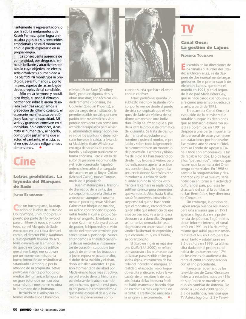 La consecuente ausencia de complejidad, por desgracia, mina un brillante y atractivo espectáculo cuyo objetivo, en efecto, sería devolver su humanidad a los castrati. Ni monstruos ni prodigios. Seres humanos y, por lo mismo, espejos de las ambigüedades propias de tal condición.