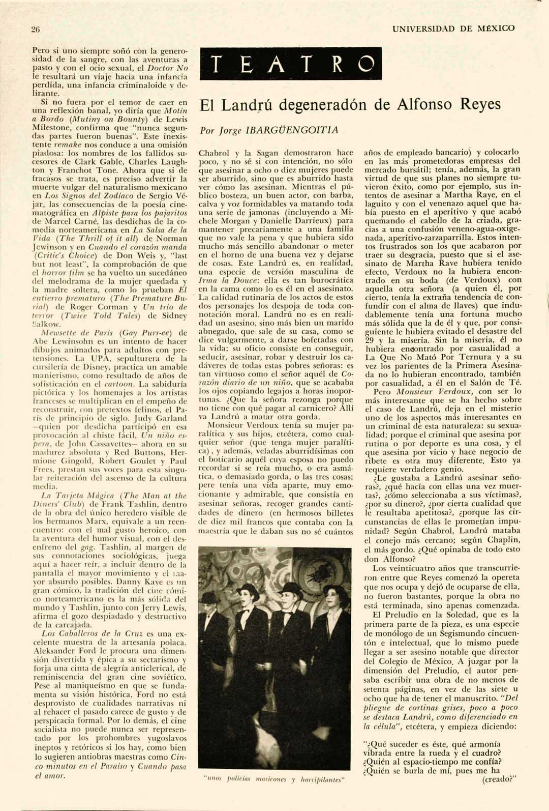 Landrú en cambio es un éxito y, en mi opinión, un acontecimiento dramático más importante que las Obras Completas del Seguro Social, en donde después de todo, no se ha descubierto nada nuevo.